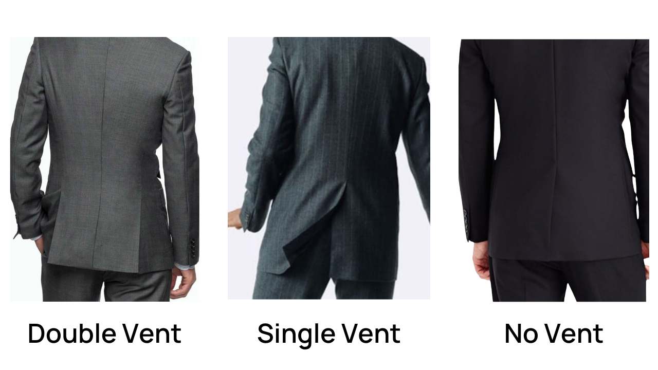 Blazers feature different vent styles (vertical slits on the back), with the double vent being the most flattering and versatile option. If unavailable, a single vent is an acceptable alternative. Avoid ventless blazers—they lack structure and style.