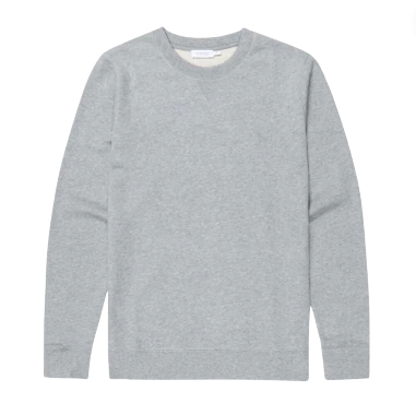 Unlike sweaters and cardigans, sweatshirts are always made of cotton (or a cotton blend), so stick with that. It can be a blend with a little stretch, but no more than a single-digit percentage otherwise it'll look overly shiny in person.