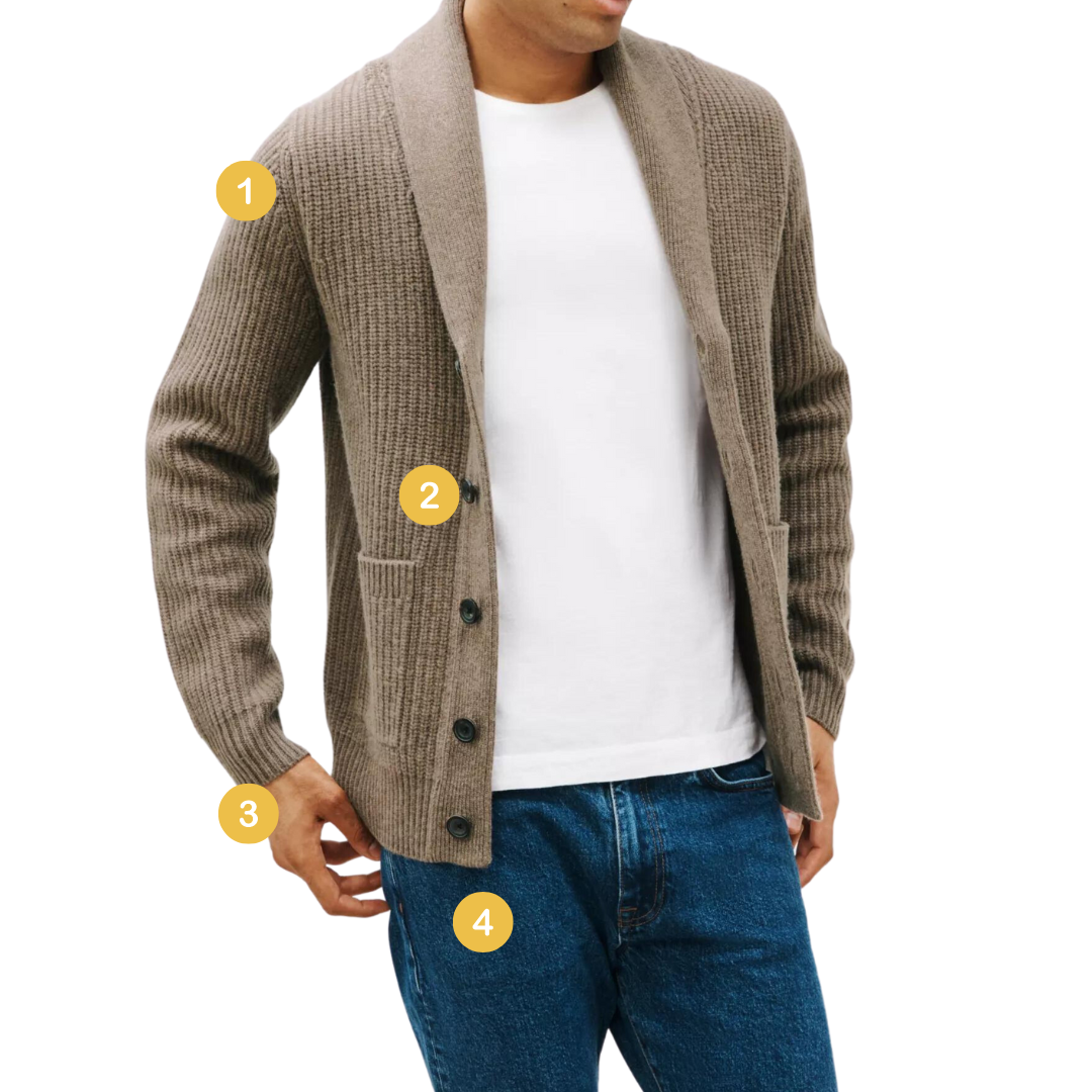 Because of their thicker collars, shawl-collar cardigans should only ever be worn as your outer layer.